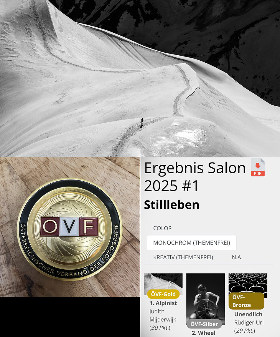 11 oktober 2024I am very happy about my third place (in the color image category), my fourth place (combination) and the second place of or Photoclub Lienz in the 44th Tyrolean Photo Championship!