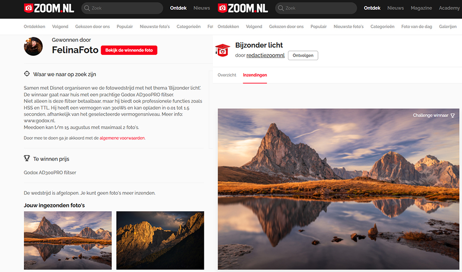 20 september 2023Wow! I've won the photo contest "Bijzonder Licht" - "Special Light" on Zoom.nl! :-)